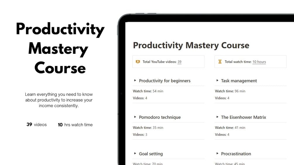 Introducing the "Productivity Mastery Course" - your ultimate guide to unlocking success and financial freedom.